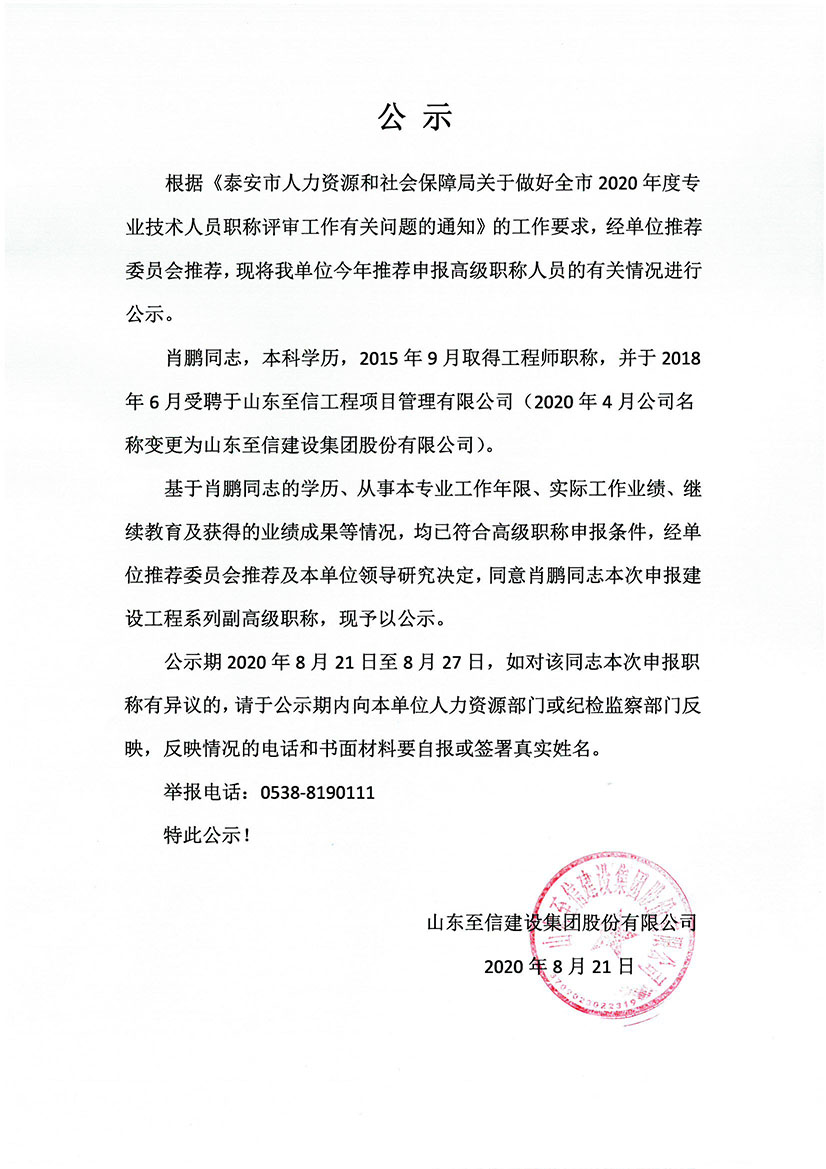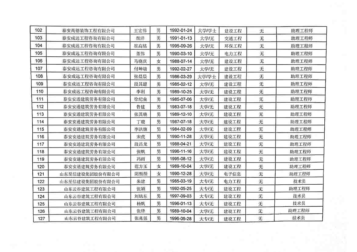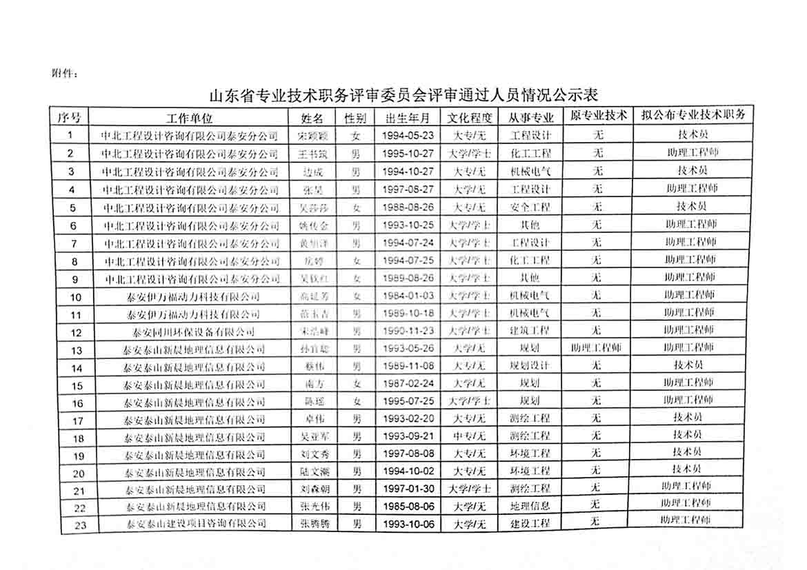 2020年度泰安市泰山区工程技术职务初级评审委员会评审通过人员情况公示通知